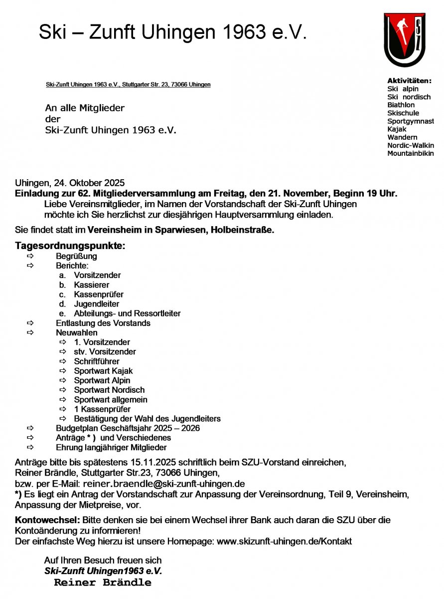 Die Ski-Zunft ist einer der größten Vereine im Hauptort Uhingen für Ski, Snowboard, Langlauf, Kajak und Mountainbike.
