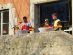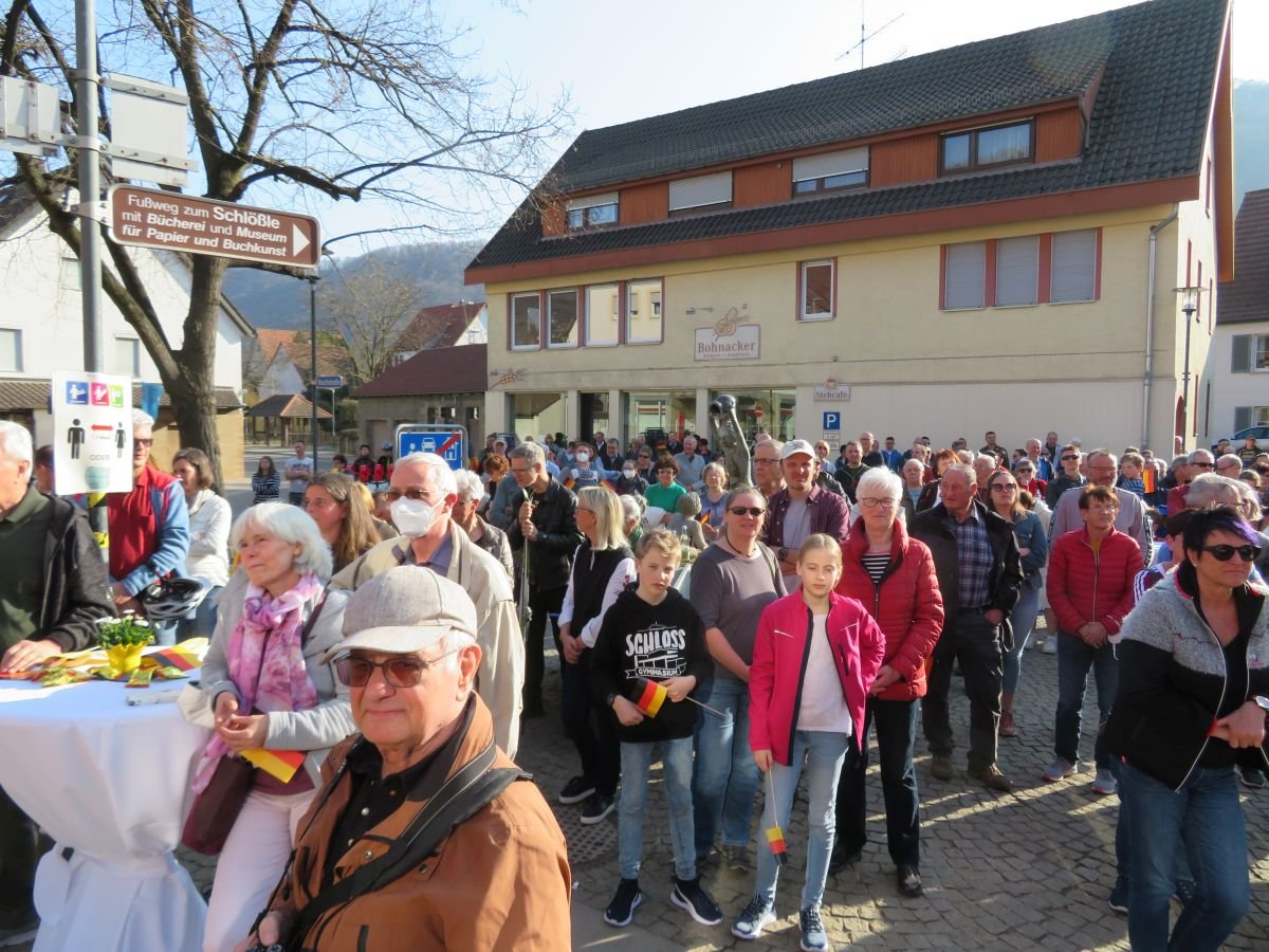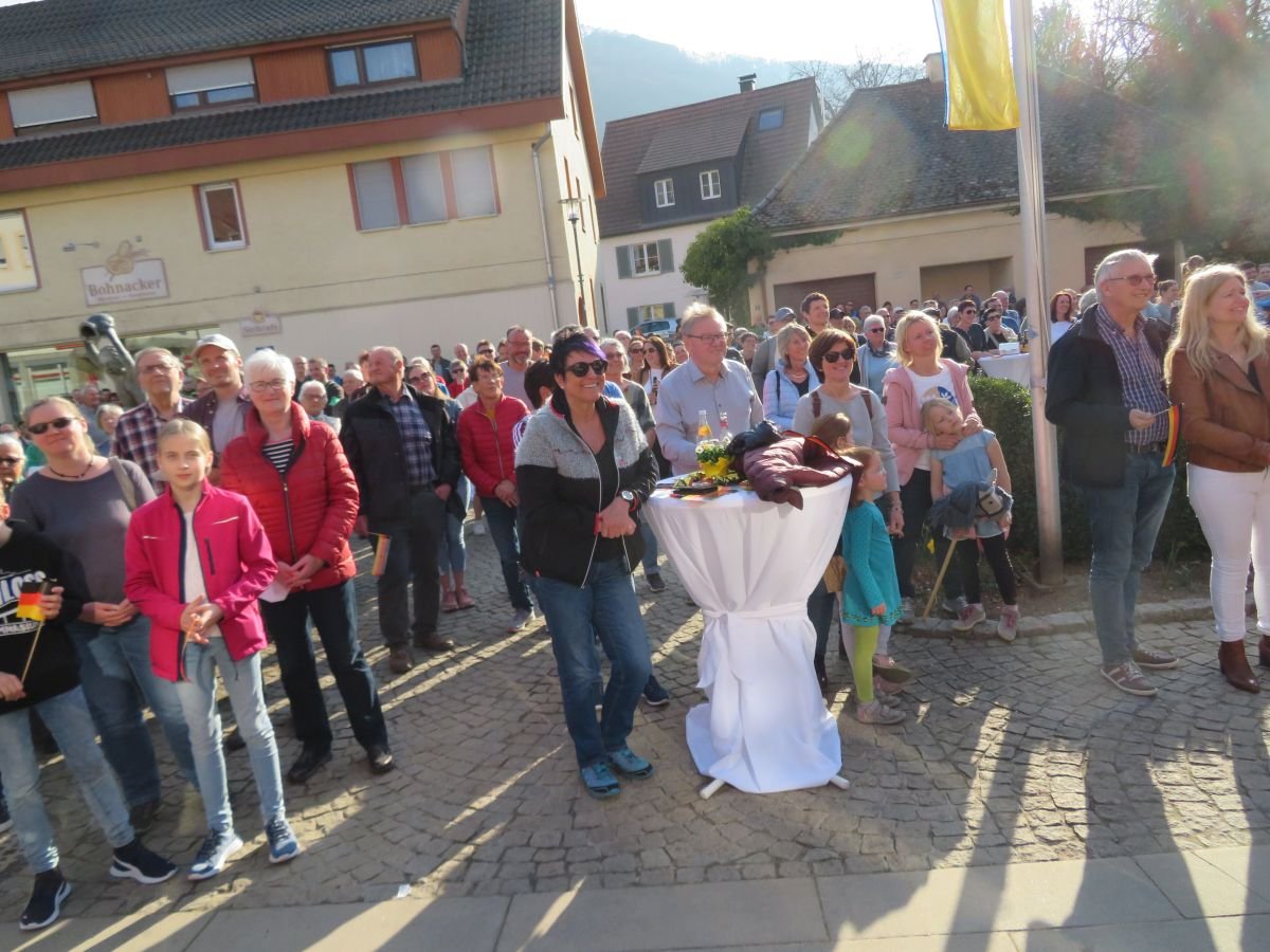 und ihres Guides Florian Baumann (Ski-Zunft Uhingen) auf dem Marktplatz in Oberlenningen.