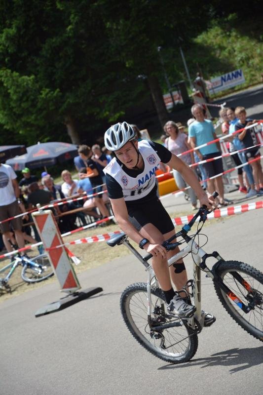 Der Wettkampf der Jugendlichen begann mit einer Biathlonserie: 20 Schuss Ruheschießen. Pro Fehler gab es 10 Sek. Zeitstrafe für den Verfolgungsstart im Duathlon. Für Hannah Becker war es der erste Kleinkaliber-Wettkampf. Liegend traf Hannah in ihrer ersten Serie acht Scheiben, im Stehendanschlag waren es 3 Treffer. In einer Gesamtzeit von 35:27 Min. ging Hannah nach 5 km auf dem Bike und 3 km Crosslauf als 6. mit einem Rückstand von 5:22 Min. über die Ziellinie. Florian Baumann traf liegend alle Scheiben, stehend blieben 4 Scheiben stehen. Mit einem Rückstand von 20 Sek. ging er als Dritter ins Rennen. Nach guter Rad- und Laufleistung (Bike 7,5km und Cross 4km) sicherte er sich den Sieg in seiner Altersklasse Jugend 1 mit 15 Sek. Vorsprung auf den Zweitplatzierten.