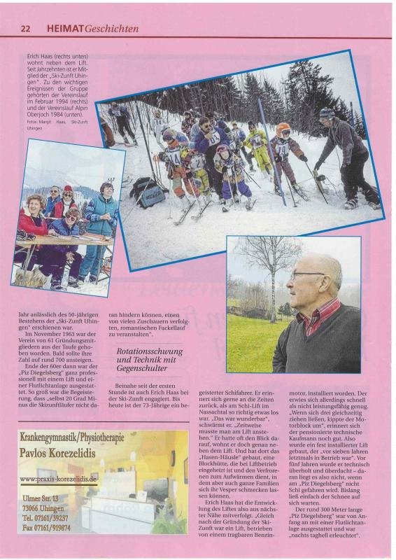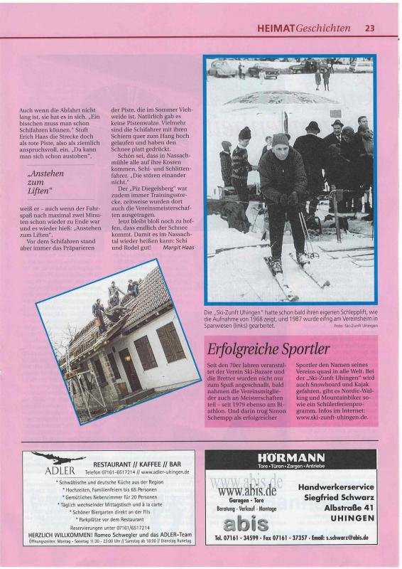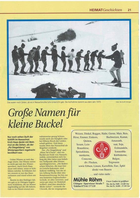 Bericht über den Skilift der Ski-Zunft Uhingen im Nassachtal in der Zeitschrift "Heimatgeschichten der NWZ", Ausgabe 19, 2014