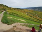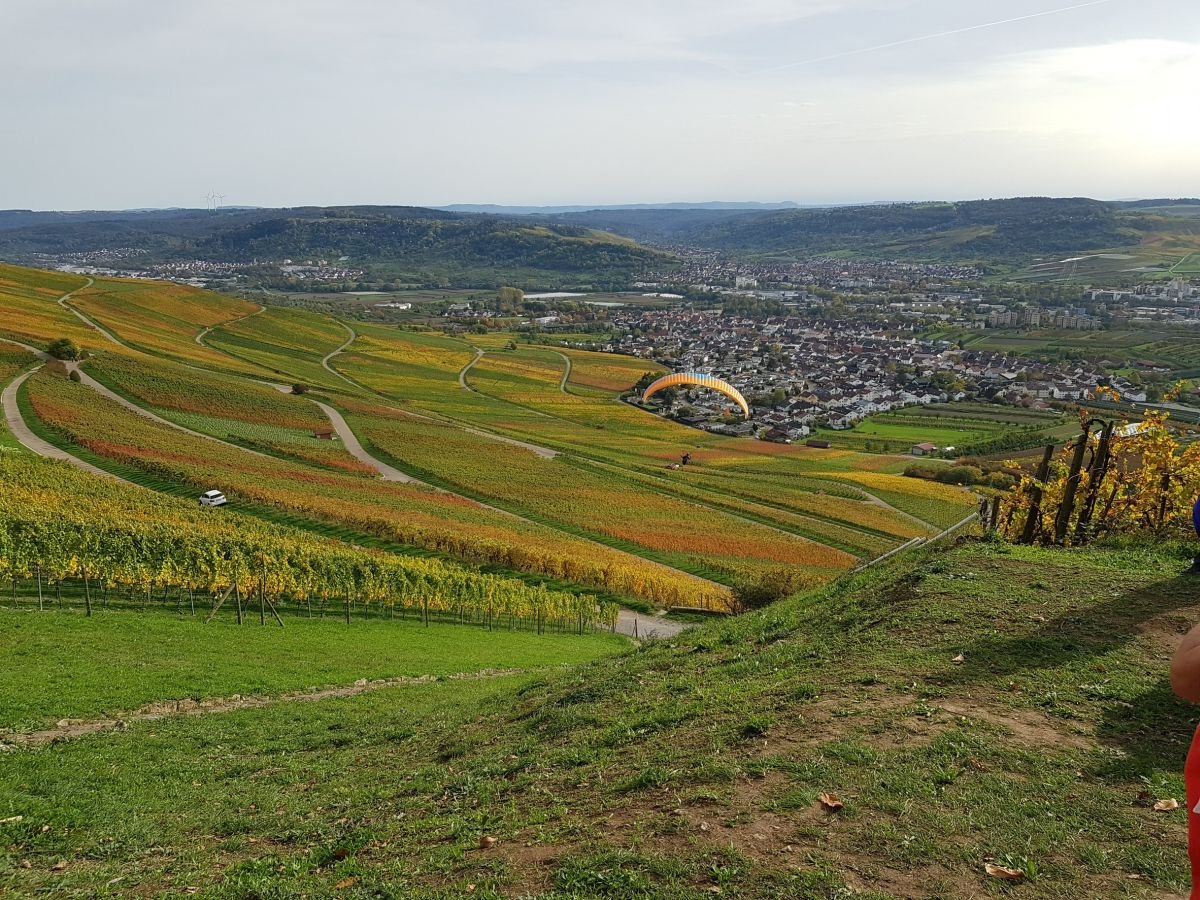 Die 17-köpfige Gruppe machte sich bei sommerlichen Temperaturen und bestem Wanderwetter auf Richtung Korber Kopf. Wir durchwanderten die fast abgeernteten Weinberge, marschierten vorbei an der Korber Skulpturenausstellung, erklommen einige Weinbergstäffele, und erreichten unser Zwischenziel, den Korber Kopf. Von hier oben hatten wir eine herrliche Aussicht ins Remstal. Nach einer kurzen Stärkung wanderten wir auf dem Korber-Kopf-Weg weiter über Hahnweiler Sattel Richtung Hörnleskopf. Der am Weg liegende große Biergarten hatte leider wegen Personalmangel geschlossen. So mussten wir unsere geplante Rast auf den nahegelegenen, gut besuchten, Spielplatz verlegen wo wir den mitgebrachten Proviant verzehrten. Gut gestärkt marschierten wir weiter über den Hörnleskopf zum Kleinheppacher Kopf. Hier bot sich uns, wie fast immer auf der Tour, ein grandioser Ausblick über das Remstal Richtung Schwäbische Alb und Schönbuch. Auch hatten sich ein paar Gleitschirmflieger eingefunden um von hier oben zu starten. Nachdem wir uns satt gesehen hatten folgte der Abstieg, wieder teilweise über Weinbergstäffele, hinunter zum Aussichtsturm “Fern sehen in Korb“ der durch seine großen Öffnungen einen ganz speziellen Ausblick bot. Danach steuerten wir unser Ziel an, die Gaststätte Schäferstüble in Großheppach, wo wir uns im Gewölbekeller das leckere Abendessen und die Viertele schmecken ließen. Unser Wanderführer hatte wohl damit gerechnet, dass nach dieser Pause keiner mehr Lust hatte die geplante Strecke nach Beutelsbach noch zu Fuß in Angriff zu nehmen. Glücklicherweise befand sich vor der Gaststätte eine Bushaltestelle! Jedoch gestaltete sich die Rückreise schwieriger als gedacht. Nachdem uns der pünktlich fahrende Bus zum Bahnhof Endersbach chauffiert hatte war eine Fahrt mit der S-Bahn nach Bad Cannstatt angesagt. Hier angelangt standen wir, und andere Reisende, am Bahnsteig und warteten auf unseren Zug nach Uhingen, leider vergebens. Ohne Informationen warteten wir am Bahnsteig. Nach einem Blick in den Fahrplan wechselten wir den Bahnsteig um weiterzukommen. Tatsächlich traf dieser Zug auch ein und fuhr fast pünktlich los. Jedoch nach kurzer Fahrt stoppe er auf freier Strecke. Eine verzerrte Durchsage faselte etwas von Stopp wegen Eingleisiger Weiterfahrt. Nach geraumer Wartezeit ging es endlich weiter, bis Plochingen, zum nächsten Umstieg. Hier erreichten wir nach sportlicher Umstiegszeit gerade noch den Anschlusszug nach Uhingen, wo wir nach 2 Stunden Reisezeit endlich wieder landeten. RaHo