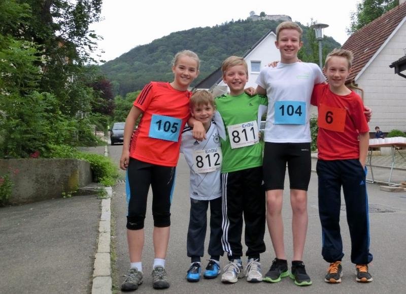 Um 10 Uhr erfolgte der Startschuss und 103 Schüler machten sich gemeinsam auf die unterschiedlich langen Strecken. Robin Kainz lief in der Schülerklasse U10 als jüngster Starter. Nach 8.38,4 Min. erreichte er als 16. das Ziel. Kevin Kainz musste ebenfalls die 1,56 km lange Strecke zurücklegen. Er lief nach 6.43,3 Min. als 17. über die Ziellinie. Evelyn Buck und Florian Baumann mussten 1,76 km mit ca. 50 Höhenmetern rennen. Bei den Schülerinnen U14 erreichte Evelyn nach 9.49,3 Minuten als 6. das Ziel. Florian gewann in 7.06,1 Min. die Schülerklasse U14. Robin Wittlinger hatte die längste Strecke zu bezwingen: 3,25 km mit 100 Höhenmetern. Nach 14.07,0 Min. lief er als 4. über die Ziellinie und verpasste das Podest nur knapp.