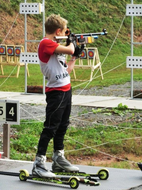 Robin und Florian starteten diese Saison gemeinsam in der Klasse Schüler 14/15. Sie mussten 5 km rollern und einmal liegend sowie einmal stehend schießen. Ihre Schießeinlage war einheitlich. Zwei Fehler liegend und drei stehend. Für die ganz vorderen Plätze einfach zu viel. Florian wurde am Ende in 17:50.6 Min. Dritter. Robin belegte in 19:04.1 Min. den 4. Platz.