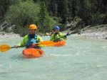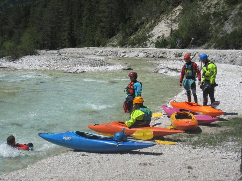 Nach einer S-förmigen Gefällstufe folgt eine Waldschlucht mit Verblockungen und wuchtigen Schwällen, die unsere volle Konzentration erfordern. Der landschaftliche Höhepunkt der Tour ist eine sehr schöne, völlig einsame Felsschlucht mit senkrechten Felswänden, Schwallstrecken und Prallwänden. Viel zu schnell ist der Genuss vorbei und das Tal öffnet sich und wir paddeln zum Ausstieg in Scharnitz.