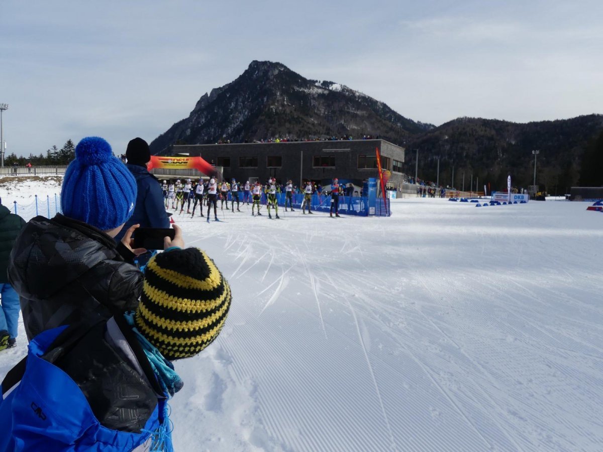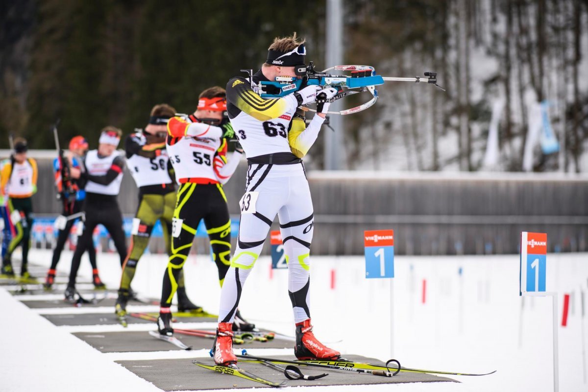 Im Massenstartwettkampf am Samstag zeigte Florian dann seine Klasse. Gemeinsam machten sich die 35 Athleten der Jahrgangsklasse auf die 10 km lange Strecke. Beim ersten Liegendschießen noch im hinteren Feld, kämpfte sich der 18jährige Platz um Platz mit guten Schießeinlagen nach vorne. Der Internatsschüler vom Skiinternat Furtwangen setzte sich vor dem letzten Stehendanschlag mutig an die Spitze. Alle vier Athleten mussten mindestens einmal in die Strafrunde. Dies nutze der aktuell Fünftplatzierte Florian Arsan, SC Vachendorf, und holte sich die Goldmedaille. Baumann schrammte in einer Gesamtzeit von 29:43.4 Min. und insgesamt nur drei Schießfehlern um 16 Sekunden am Bronzeplatz vorbei.