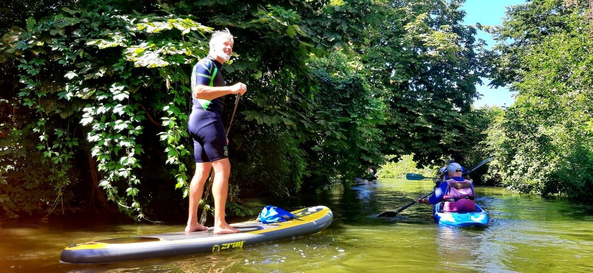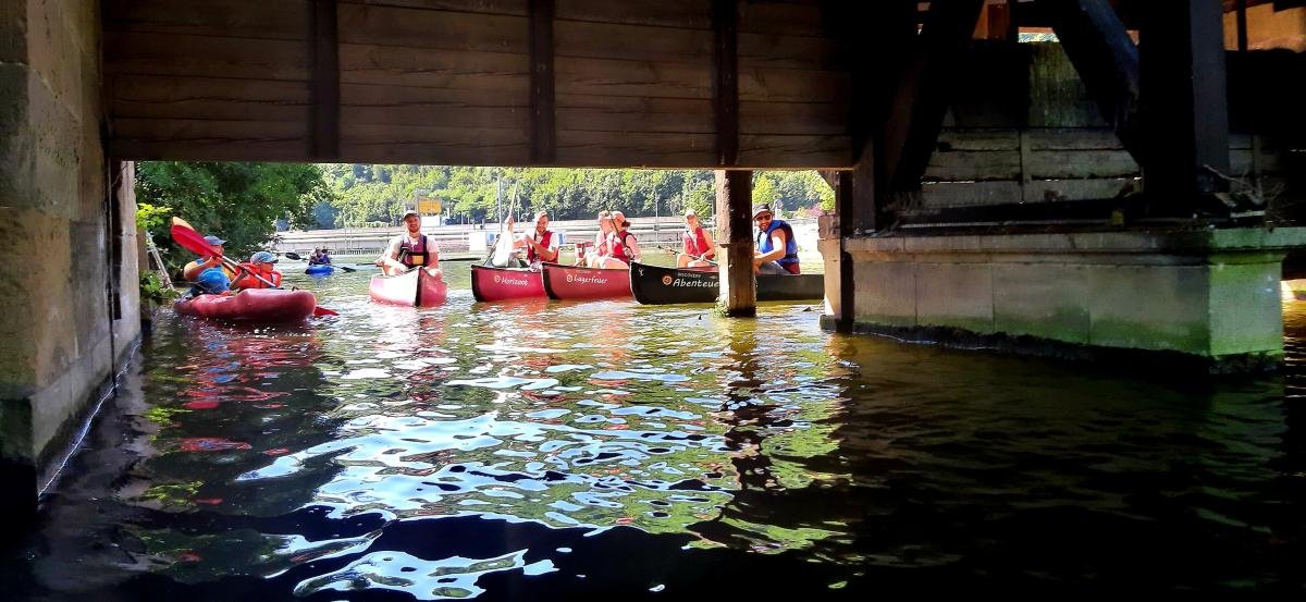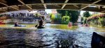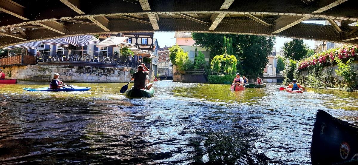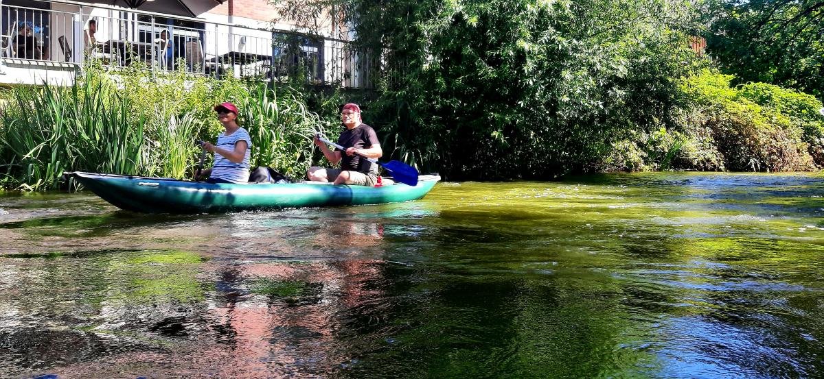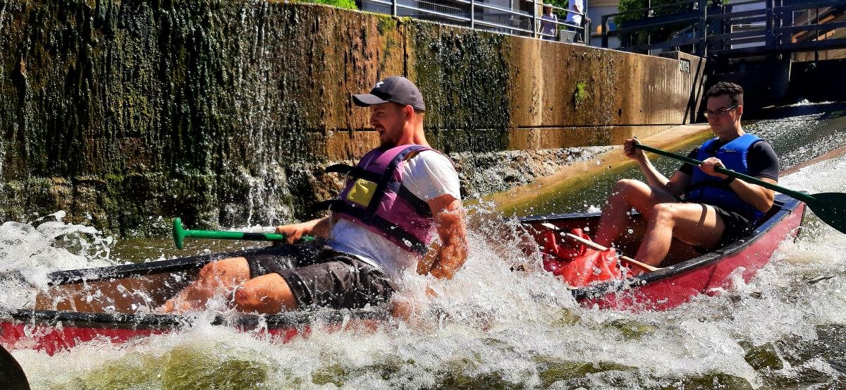 Wassermangel spielte bei unserer gemütlichen Familientour durch die Esslinger Kanäle am 17. Juli keine große Rolle. Wir paddelten mit Kanus und Kajaks durch die Kanäle der Esslinger Altstadt. Start- und Zielpunkt war am Vereinsheim der KV-Esslingen. Die zwei Bootsrutschen waren dabei der feuchtfröhliche Höhenpunkt der Tour. Für die Nichtpaddler wurde eine Burg- und Stadtführung durch den Schwäbischen Albverein organisiert.