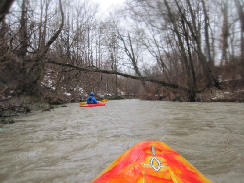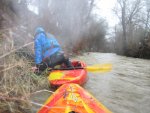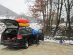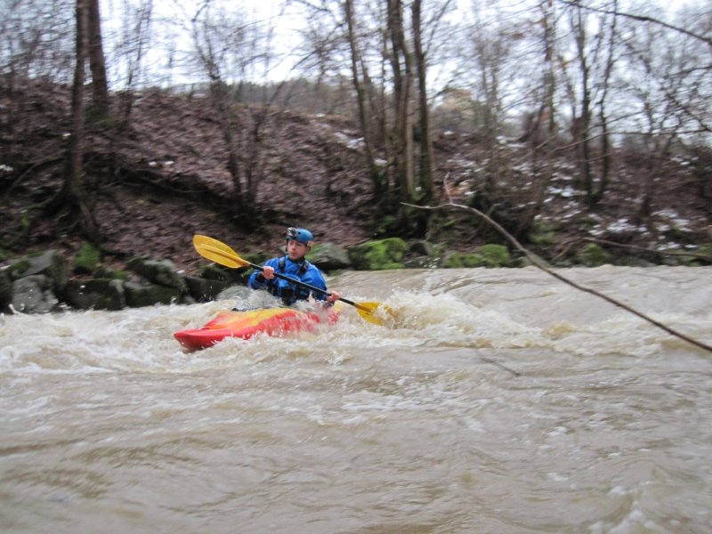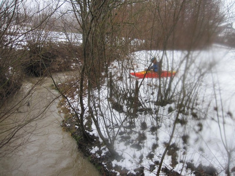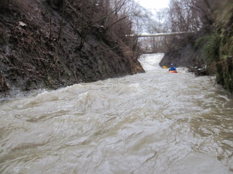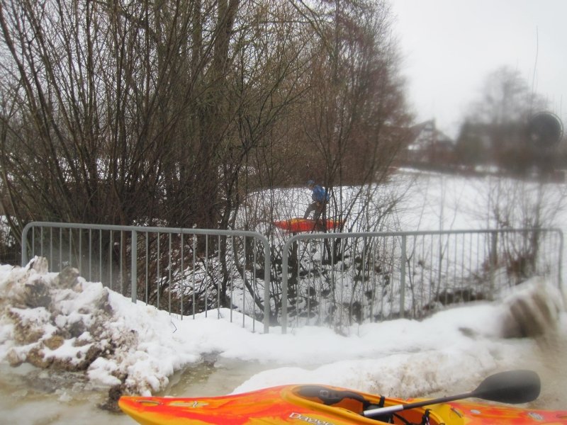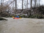 Nach Regenfällen stieg der Pegel der Donzdorfer Lauter auf 90 cm an. Die Wettervorhersage hatte wieder einmal recht gehabt. Wir starteten bei Regen; aber gegen Mittag wurden wir mit Sonnenschein belohnt. Die schnell fließende Lauter war in dem engen Flussbett mit zahlreichen umgeknickten Bäumen gespickt. Es war eine spritzige Rutschpartie mit kleinen Stufen und Abfällen. Auch hat sich gezeigt, wie wichtig die Beherrschung der Kenterrolle ist.