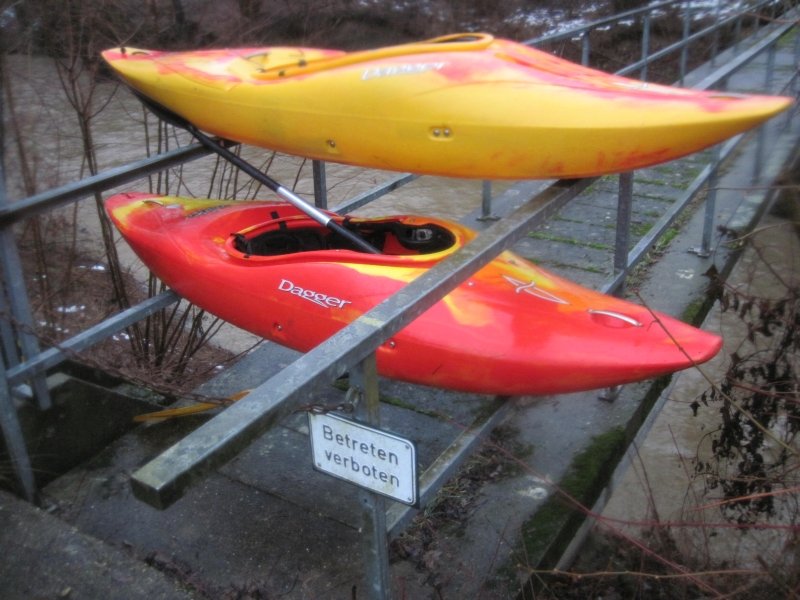 Die privaten Kajaks bitte mitnehmen. Vereinsboote können dort verbleiben.