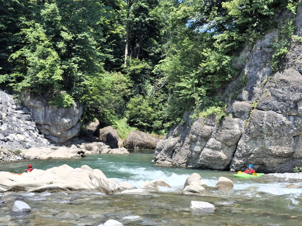 bei den diesjährigen Wälder Tagen wurde weniger Wasser abgelassen wie sonst üblich. Dies sorgte bei uns für entspannte Flusskilometer auf der Bregenzer Ach mit vielen Spielstellen in glasklarem Wasser.