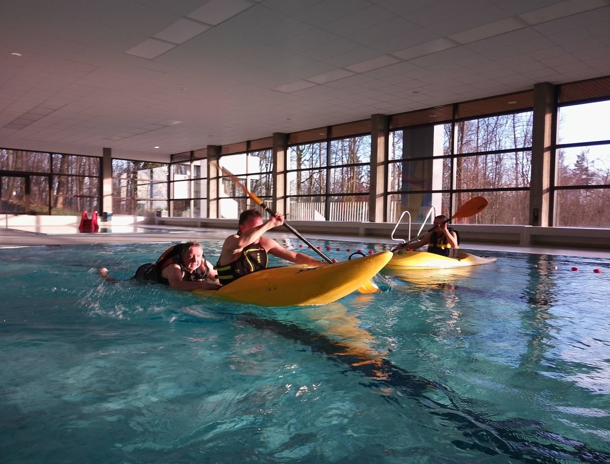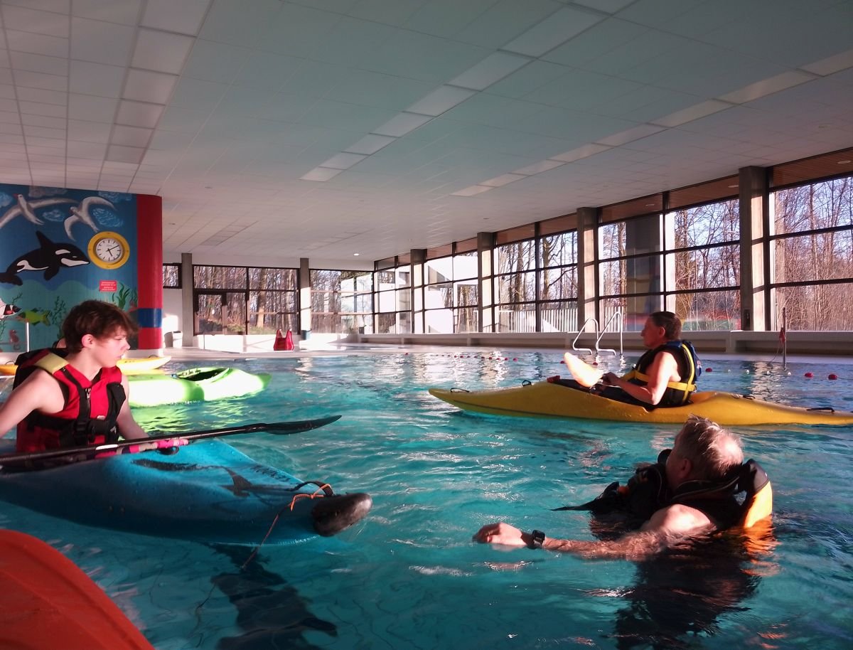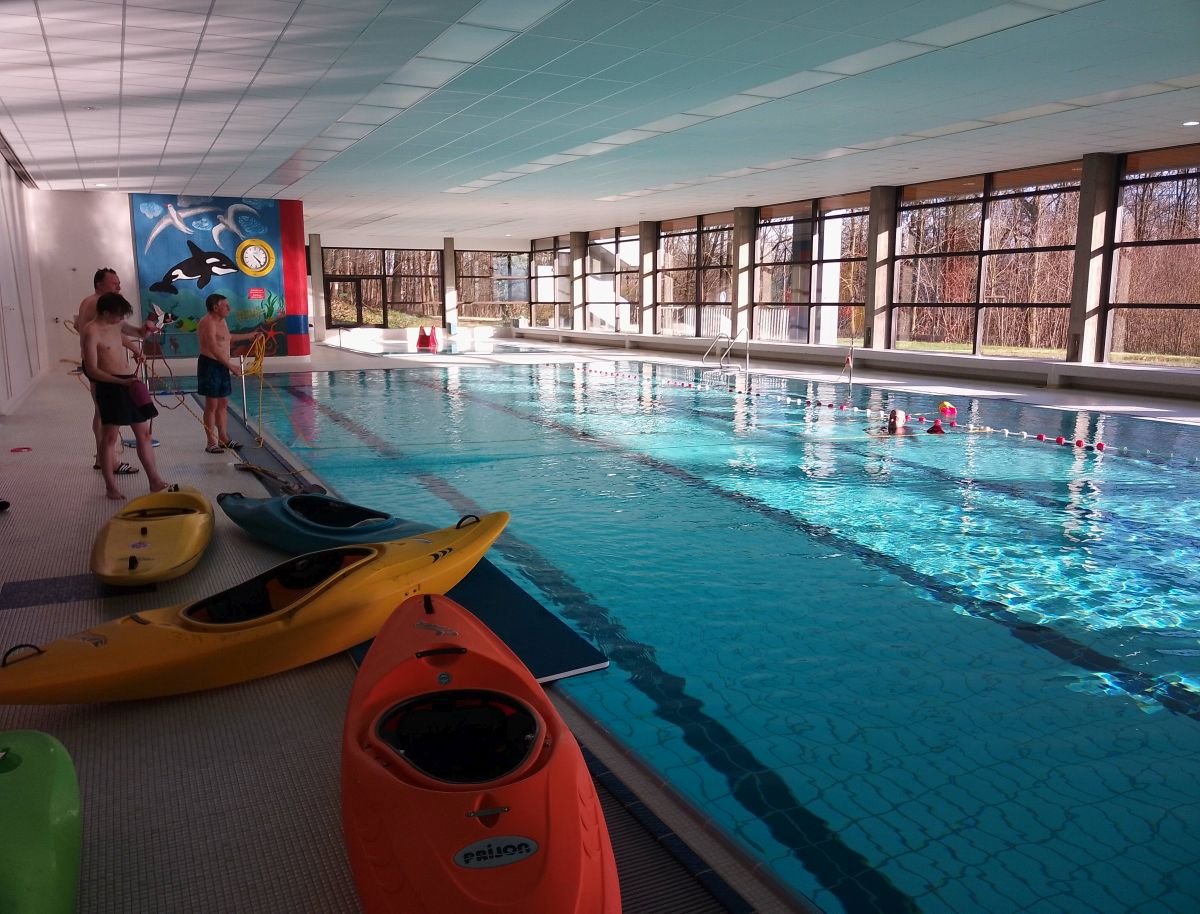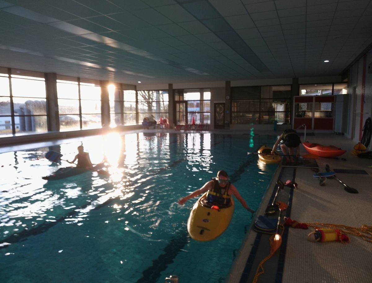 Wir übten den richtigen Umgang mit unserem wichtigsten Rettungsgerät, dem Wurfsack. Nicht jeder Wurf war ein Treffer. Die Bergung eines Schwimmers, eines Paddels oder eines Kajaks muss im Wildwasser sitzen und immer wieder geübt werden, damit im Ernstfall eine optimale Rettung erfolgen kann. Bei unserem letzten Hallenbadtermin perfektionieren wir zudem die Kenterrolle, um viel gelassener in die Paddelsaison zu starten.