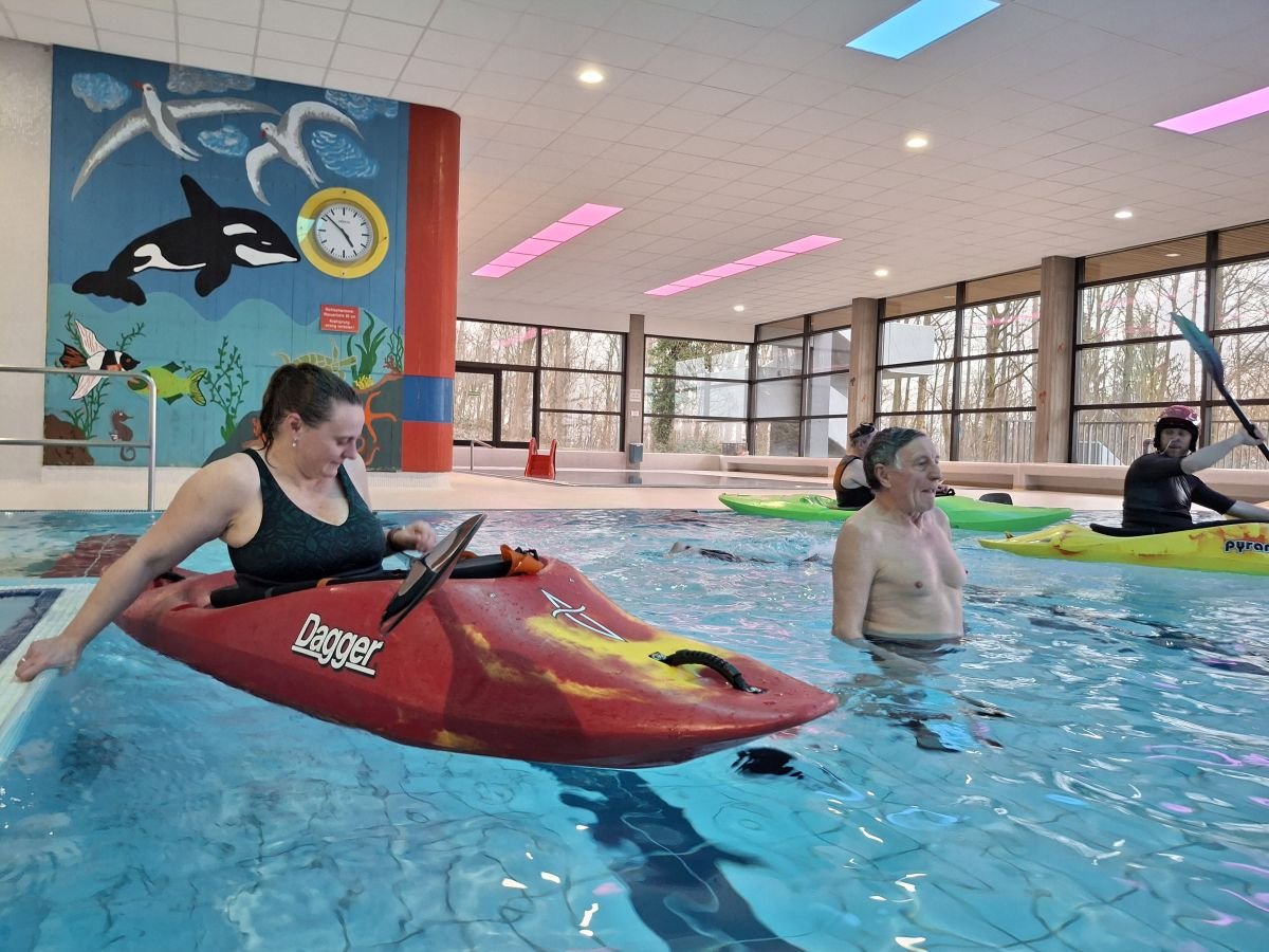 Über die Wintermonate stand das Erlernen der Kenterrolle im Vordergrund. Aber auch die Schulung der wichtigsten Sicherheits- und Paddeltechniken wurden geübt.