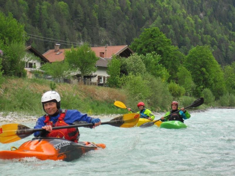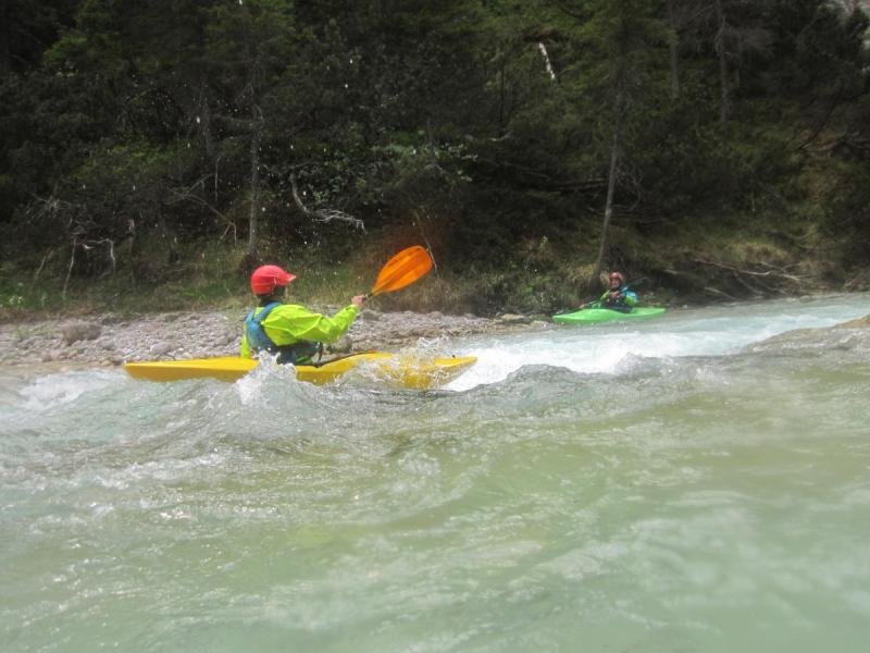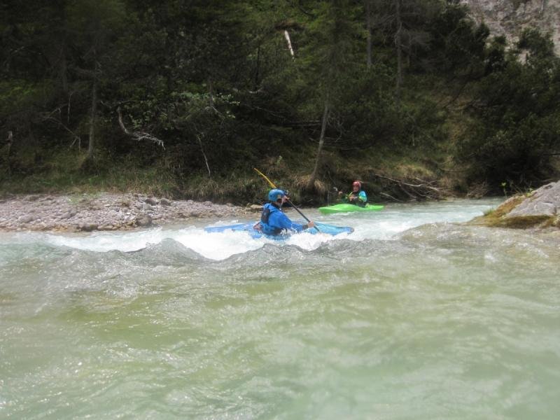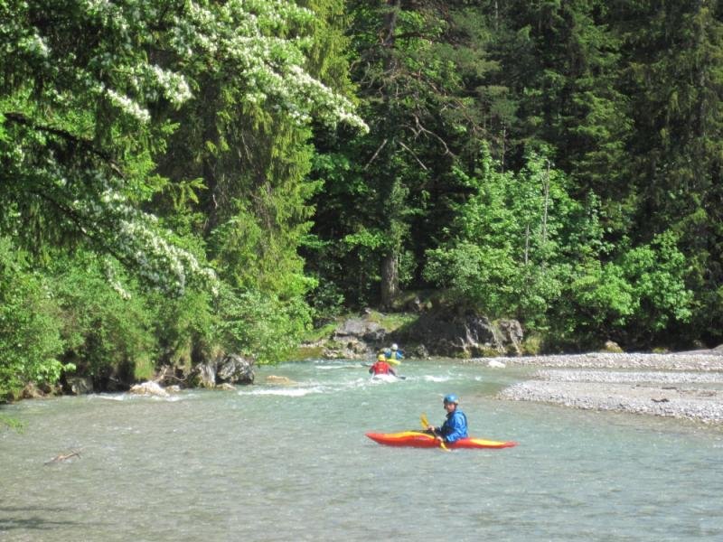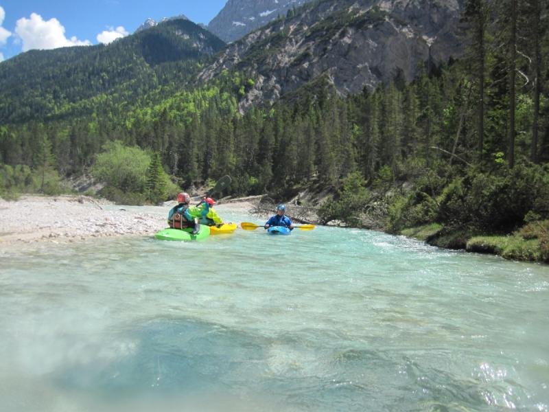 Die erste Tour auf der Isar war die Strecke von Scharnitz bis zum Campingplatz. Bei Sonnenschein und kristallklarem Wasser war es wieder eine Genusstour.