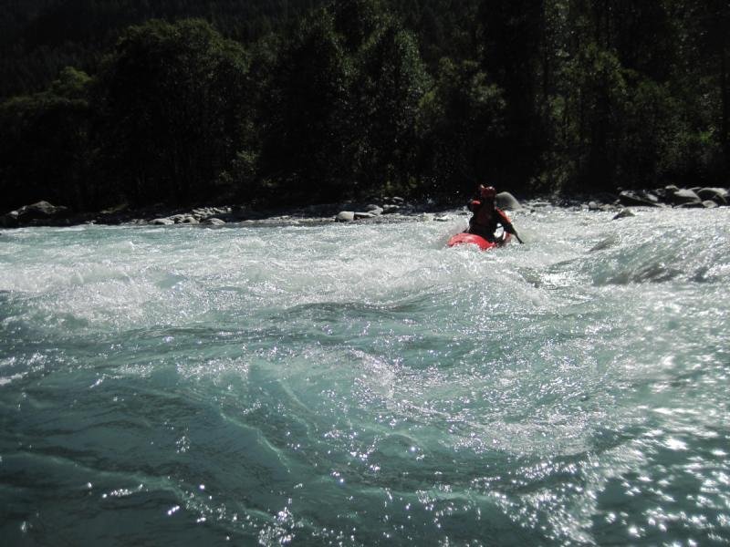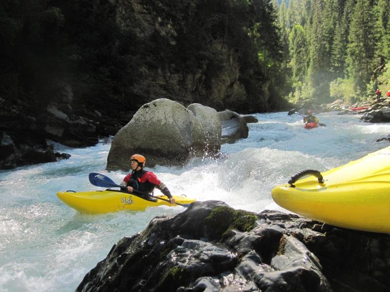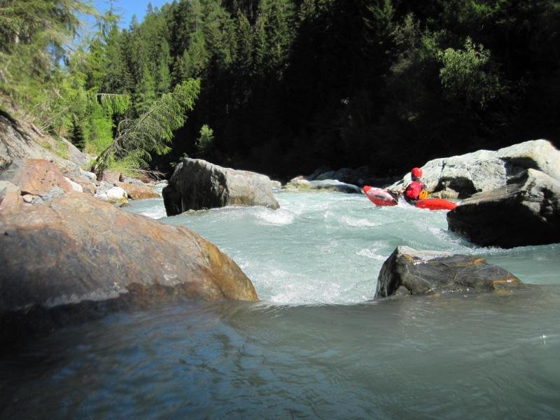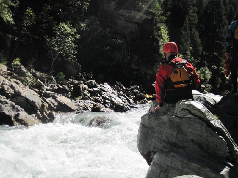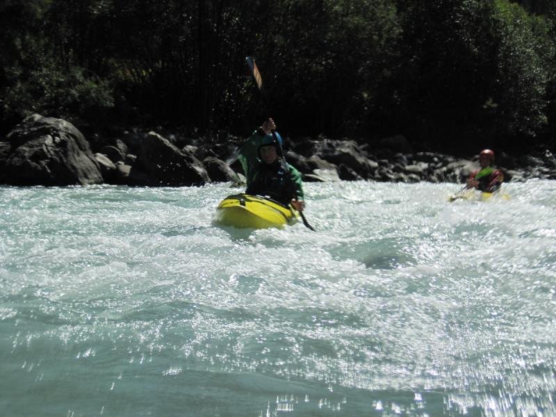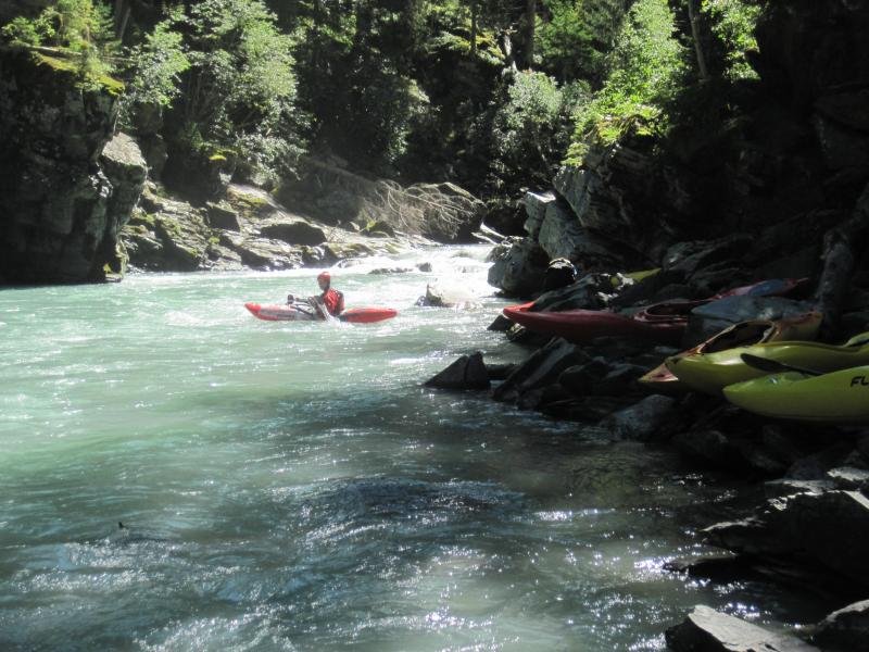 Der Oberlauf des Inns im Engadin bietet landschaftlich sehr schöne und wassertechnisch sehr abwechslungsreiche Flussabschnitte. Für uns Normalpaddler waren die 17 Kubik Wassermenge genau richtig. Enstpannt paddelten wir die vielen Schwallstrecken hinunter. Die "Preusenschleuder" eine echte Herausforderung, war die schwerste Stelle auf der Giarsunschlucht. Die folgende Ardezerschlucht ist zwar erheblich kürzer, hat aber ein starkes Gefälle mit einigen Umtragestellen.