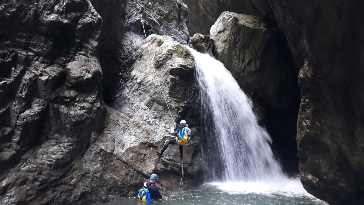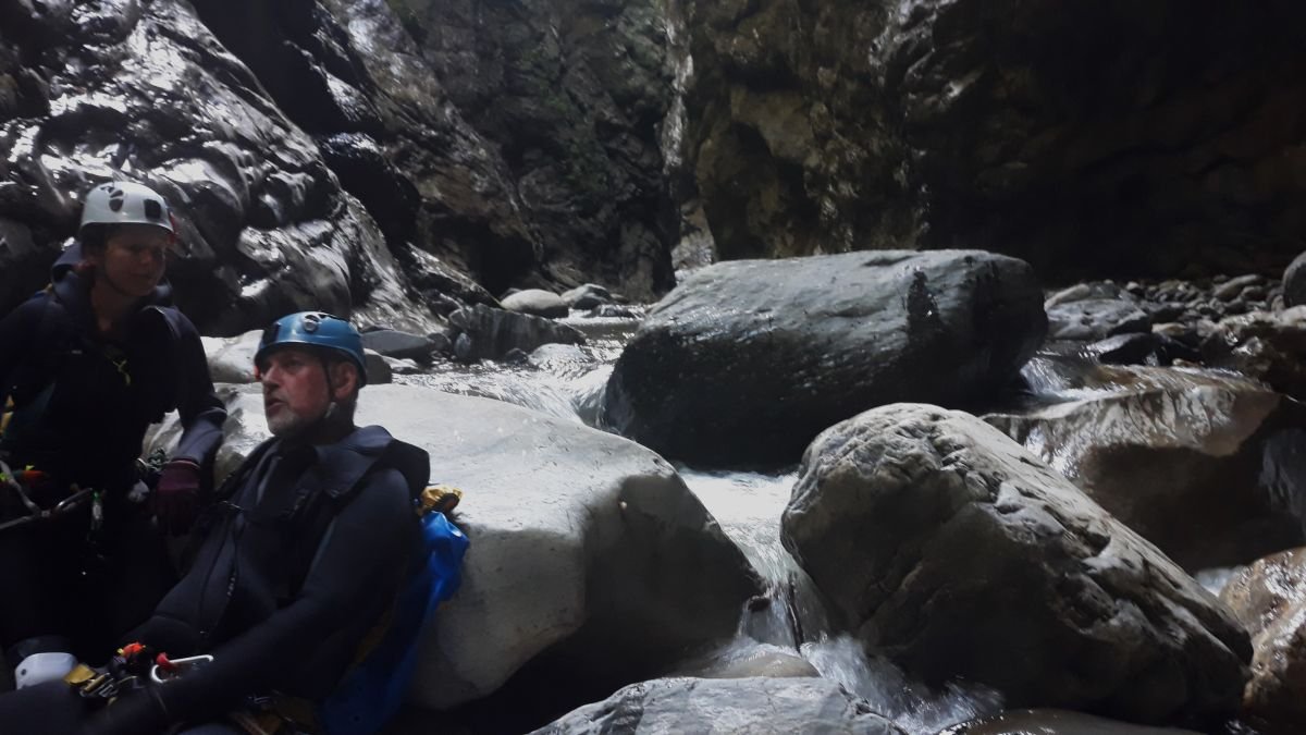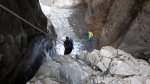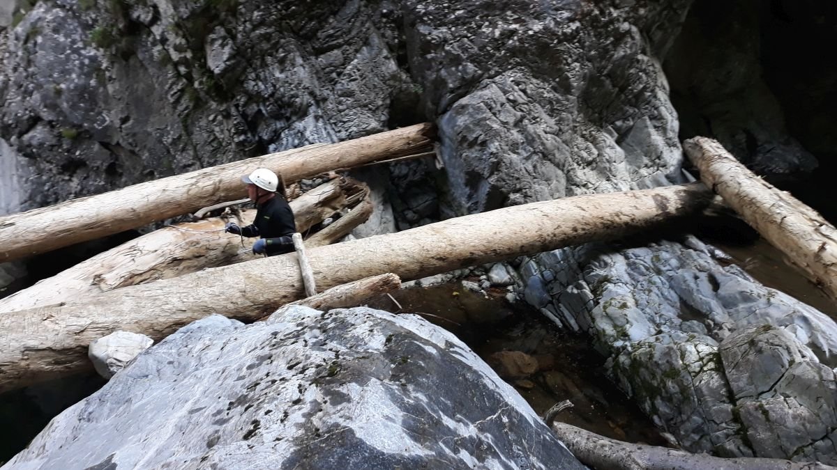 Es fehlten die Rutschen und tiefen Gumpen zum Springen, da diese mit viel Kies zugeschüttet waren, den auch das Hochwasser nicht hatte rausspülen können. Gleich zweimal waren auch Haken weggerissen worden, so dass wir sehr zeitaufwändig im Frauenbach von Hand neue Löcher für die Haken bohren mussten. Ein Erdrutsch mit einem riesigen Baumverhau zwang uns, die Schlucht des Nöblinger Grabens über einen Notausstieg zu verlassen. Es bleiben unvergessliche Erlebnisse im Gail- und Drautal.