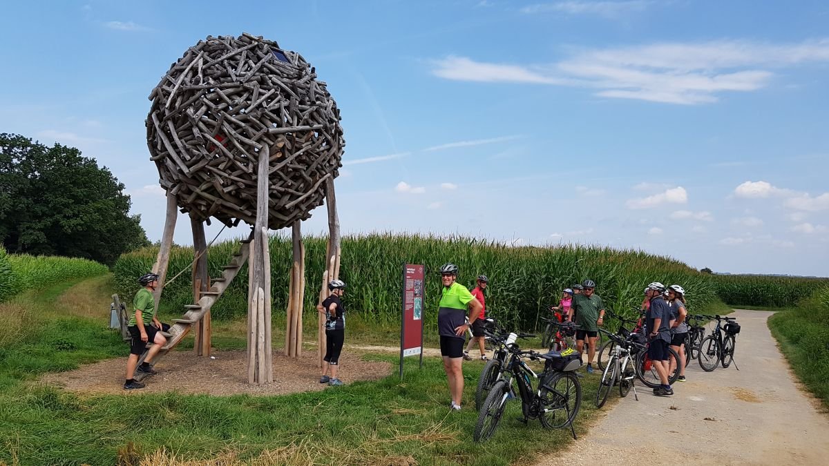 Am Sonntagvormittag starteten um 9.30 Uhr die Radler bei angenehmen Temperaturen zu ihrer Tour. Über Schloss Filseck führte die Strecke hinab nach Faurndau um dann über das Pfuhlbachtal nach Jebenhausen zum Schloss Liebenstein zu gelangen. Ein kurzer Geschichtsrückblick zur Vergangenheit der Schlossherrschaft derer von Liebenstein folgte. Ein paar Meter weiter, am alten Badhaus, hier ist der Sauerbrunnen hinter einem großen Tor verborgen, der nächste Stopp. Hier Andrang von Freunden des Jebenhauser Sauerwassers, welche dies gleich Kistenweise abfüllten. So radelten wir weiter nach Dürnau wo am Schloss, das unter Anderem das Gralglasmuseum beherbergt, der nächste Stopp eingelegt wurde. Über Bad Boll-Sehningen und vorbei an Pliensbach rollten unsere Räder runter nach Hattenhofen. Am Kreisverkehr bogen wir in die Dorfwiesen ein um am Haldenbrunnen und dem Industriegebiet vorbei eine Runde um Hattenhofen zu drehen und beim Sauerbrunnen in der Reustadt zu landen. Hier konnten die Beine im Kneipbecken abgekühlt, und der Durst mit frischem Sauerwasser gelöscht werden. Über Schopflenberg gelangten wir zum “Kugelnest“ im Landschaftspark Filseck. Der rabiate Zerstörungsversuch des Kugelnestes, die Spuren sind auch nach der Instandsetzung noch gut sichtbar, machte uns fassungslos.
