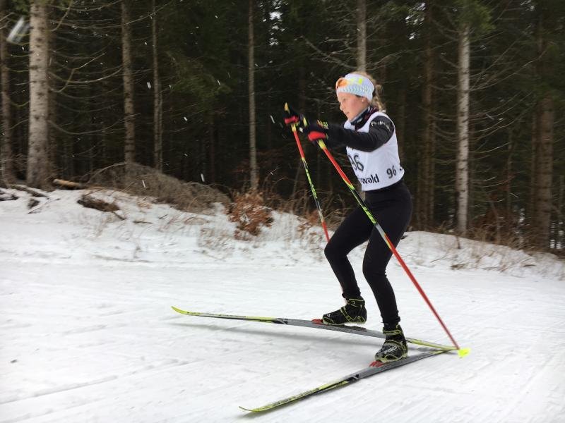 Für die SZ Uhingen ging Luise Becker als erstes in die Loipe. In der mit 11 Starterinnen besetzten Schülerinnenklasse 12-13 benötigte sie für die 3 km lange Strecke 15:17.4 Minuten. Am Schießstand blieben nur im ersten Liegendanschlag 2 Scheiben stehen. In den beiden folgenden Schießeinlagen blieb Luise fehlerfrei. Sie beendete das Rennen auf dem 10. Platz.