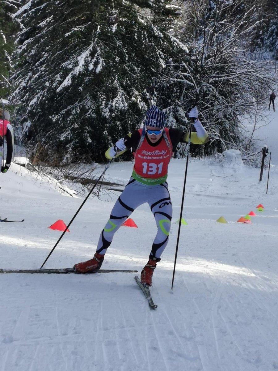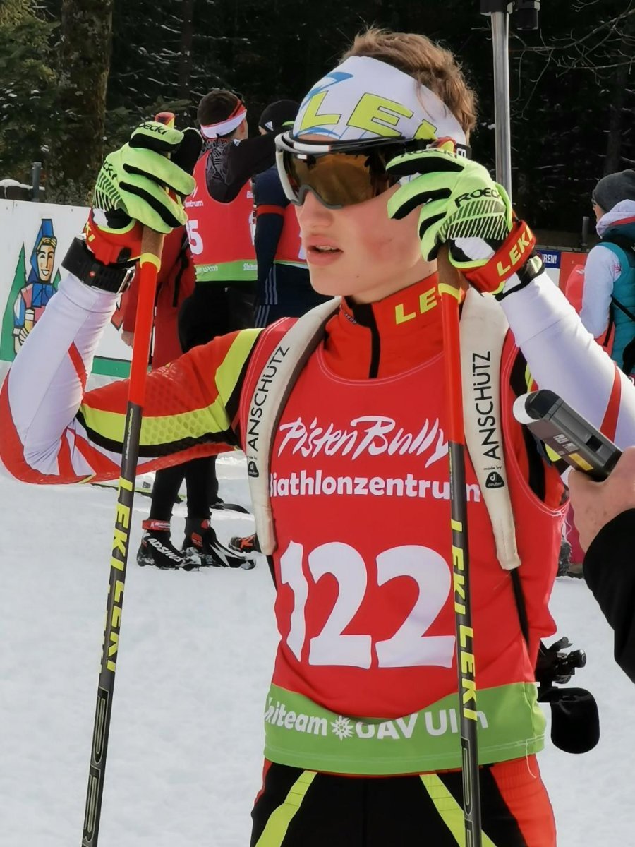 Auch Kevin Kainz in der männlichen Jugend 16-17 hatte 7,5km auf der Loipe zurückzulegen, kam aber im Schießstand weniger gut zurecht: 4/2/3/3 lautete am Ende sein Ergebnis nach 4 x Schießen (L/S/L/S), was ihn am Ende den 7. Platz bescherte.