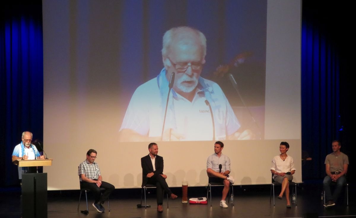 Mit einem Rückblick in die Jugend, mit Trainingseinheiten in Gosheim und ersten Erfahrungen mit dem Biathlonsport startete Harald Betz anschließend ein Interview mit Simon Schempp, Simone Hauswald und Steffen Hauswald.