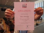 Im Namen der Ski-Zunft Uhingen, des Fanclubs und der Stadt Uhingen überreichte Hahner einen Gutschein an Simon Schempp. Moderator Betz hinterfragte neugierig den Geldgutschein, wofür er verwendet wird. Simons Kommentar: „Es ist eine Überraschung. Wir schwanken noch zwischen Motorsäge und einem Freischneider.“