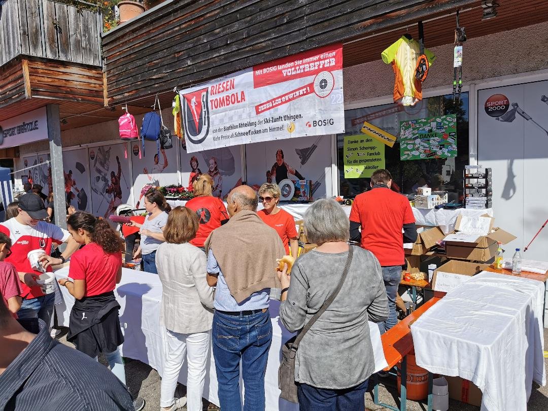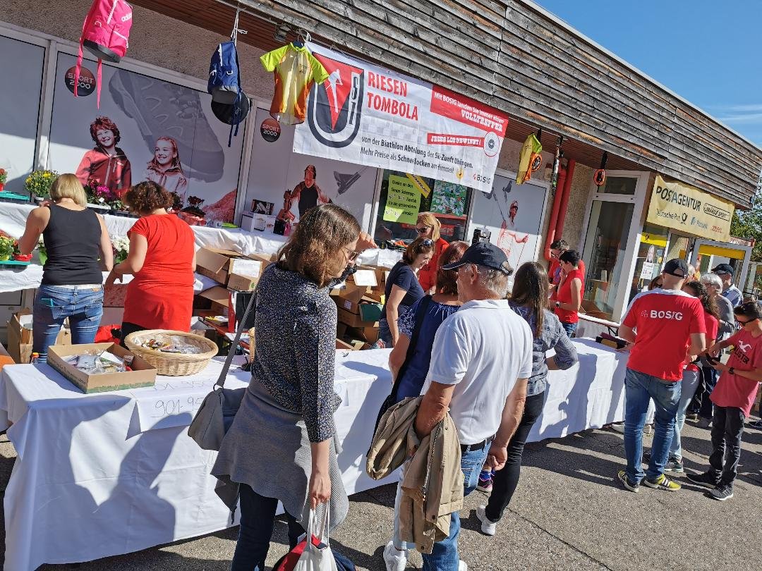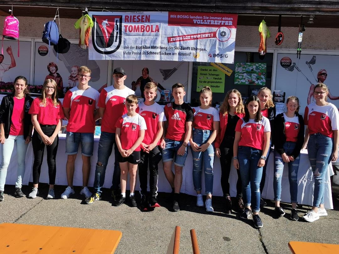 Auch die Biathlon-Jugend der Skizunft Uhingen hatte wieder vor Sport-Brändle ihre Tombola aufgebaut.