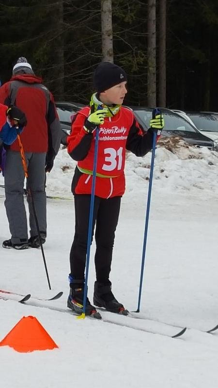 Sein Debüt feierte Jona Fischer für die Skizunft: Er mußte in der Klasse Schüler 14 gleich 6,0km bewältigen und im Wechsel sowohl liegend als auch stehend je zweimal in den Schießstand - 4/3/3/4 lautete sein erstes Schießergebnis auf Wettkampfbasis.