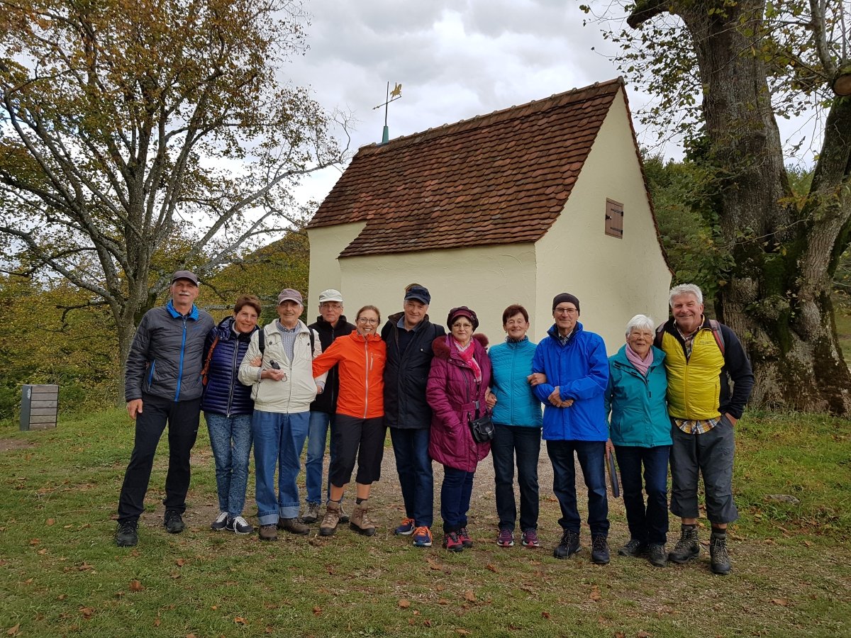 Am späten Nachmittag traf sich die Wandergruppe bei guten Wetterbedingungen am Gasthof Heldenberg zur verabredeten Wanderung. Entlang der Flanke des Heldenberg wanderten wir das Christental hoch, vorbei am Schwarzhorn, zur Reiterles Kapelle. Hier oben bot sich ein herrlicher Ausblick über Weilerstoffel hinweg Richtung Remstal mit Schwäbisch Gmünd und weiter Richtung Schwäbisch-Fränkischer Alb. Als Kontrast bot die Reiterles Kapelle, erbaut 1714 und grundlegend saniert im Jahr 2013, in ihrem Inneren dagegen Zeit zur stillen Einkehr. Nach einer geraumen Aufenthaltszeit führte unser Weg wieder zurück durchs Christental. Vorbei am gleichnamigen Stausee erreichten wir wieder unseren Ausgangspunkt. Hier im Lokal Heldenberg fang der Abend dann einen gemütlichen Ausklang. RaHo