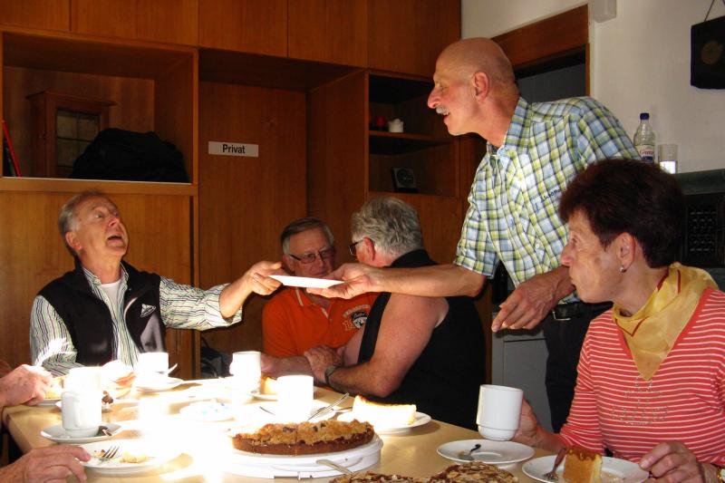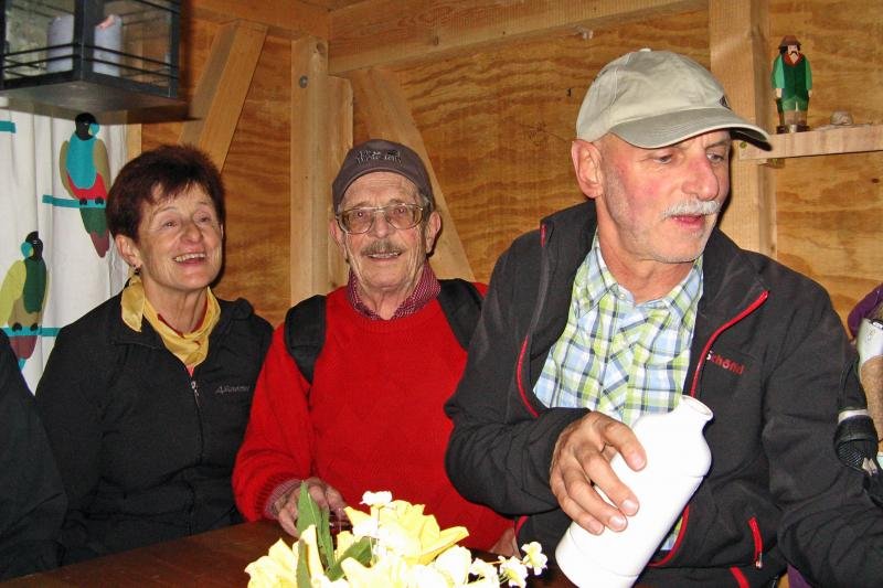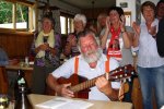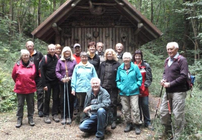 Hinter dem sehr spärlich besuchten Freibad ging es über schmale Pfade, die so manchen ins schwitzen brachten, steil hoch zur Bertaburg und weiter zur Kornberghütte wo wir uns vorsorglich angemeldet hatten. Bei mitgebrachtem Kuchen schmeckte der Kaffee. Im Laufe es nachmittags füllte sich die Hütte zusehend so dass sogar die Plätze um die Hütte herum, bei nachmittäglichem Sonnenschein, gut gefüllt waren. Nun griff ein Duo zu Gitarre und “Quetschkommode“, stimmte die verschiedensten Lieder an und brachte die Hütte zum schunkeln. Hier ließen sich die “Ski-Zunftler“ natürlich nicht zweimal bitten, sangen und schunkelten recht kräftig mit. Als am späten Nachmittag der Verfolgungs-Sieg von Simon Schempp bei der Deutschen Biathlonmeisterschaft in Langdorf bekannt wurde, den Smartphons sei Dank, wurden Fanschals hochgehalten und es hallten spontan drei kräftige “Ski heil“ durch die Hütte. Dieser Meistertitel musste natürlich sofort begossen werden. Nach einem kräftigen, zünftigen, Vesper, unter anderem mit der legendären “Kornbergplatte“ wurden wieder die Rucksäcke gepackt und wir machten uns auf um noch einen kleinen Abstecher zum “Schneckenhäusle“ zu machen. Nach einem kurzen Stopp wanderten wir über die Boller Heide zurück zum Parkplatz beim Freibad den wir bei Einbruch der Dunkelheit erreichten. Ein Dank an dieser Stelle unseren Wanderführern Connie und Dieter für diesen gelungen Nachmittag.