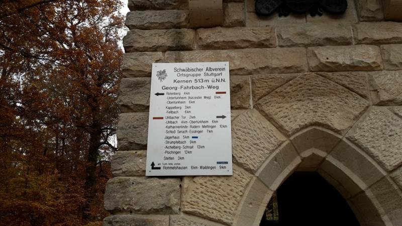 Bei frühlingshaften Temperaturen verlief unser Weg über die Rüdener Straße gleich bergan Richtung Ailenberg. Die Ersten kamen hier schon ganz schön ins schnaufen. Weiter führte ein schmaler Treppensteig hoch nach Rüdern wo wir erst mal durchschnaufen mussten. An Rüdern vorbei erreichten wir die Wiesen vor dem Katharinenlindenturm den wir rechts liegen ließen. Über einen abschüssigen Pflasterweg kamen wir zum Parkplatz “Sieben Linden“. Durch den Wald wanderten wir weiter hoch zum Kernenturm der bei diesem Wetter sehr gut besucht war. Vor dem offenen Kiosk hatten sich Menschenschlangen gebildet. Ein Aufstieg auf den Turm durfte natürlich nicht fehlen. Oben gab es auf der kleinen Aussichtsplattform ein rechtes Gedränge, zuerst mussten welche die Plattform verlassen, so dass wir nach und nach die Aussicht von hier oben genießen konnten. Wieder auf dem Waldboden angekommen wanderten wir auf dem Georg-Fahrbach-Weg weiter Richtung Rotenberg. Um den Götzenberg herum gelangten wir durch die Reben, die leider schon ihr buntes Laub abgeworfen hatten, nach Uhlbach und weiter nach Obertürkheim wo wir vorab im Besen Plätze reserviert hatten. Gut gestärkt machten wir uns auf um mit der S-Bahn um 19.00 Uhr Richtung Uhingen zu fahren. In Esslingen war dann Umsteigen in die Bahn angesagt. Wir erreichten unser Gleis pünktlich, mussten aber feststellen, dass eine Verspätung angezeigt war. Wir warteten auf unseren Zug, der jedoch laut Anzeigetafel immer mehr Verspätung hatte. In Richtung Stuttgart wurde dann verkündet, dass die komplette Strecke gesperrt ist. Das schaute nicht gut aus. So beschlossen wir einen Bummel in die Stadt zu machen, der dann in einer nahegelegenen Gaststätte endete. Hier konnten wir uns wieder aufwärmen nachdem es doch merklich frisch geworden war. Um 21.45 Uhr kamen wir zurück zum Bahnhof und konnten tatsächlich mit der Bahn nach Uhingen weiterfahren.
