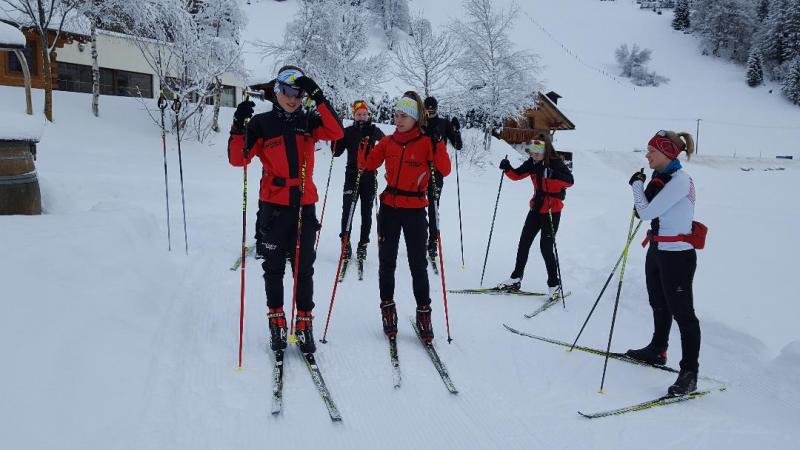 Nach knapp 6-stündiger Anfahrt wurde die Gruppe bereits vor Ort von den Wetterbedingungen überrascht: starker Schneefall in den Abend- und Nachtstunden des Vortages ließen das Lesachtal in eine Winter-Traumlandschaft versinken, was aber Trainer Reiner Schempp nicht davon abhielt, bereits am Nachmittag mit der ersten Einheit zu beginnen: Gleitübungen und Techniktraining im Scating-Stil auf der Loipe von Unter- nach Obertilliach stand auf dem Programmpunkt.