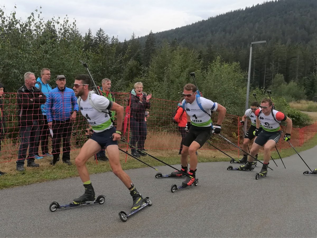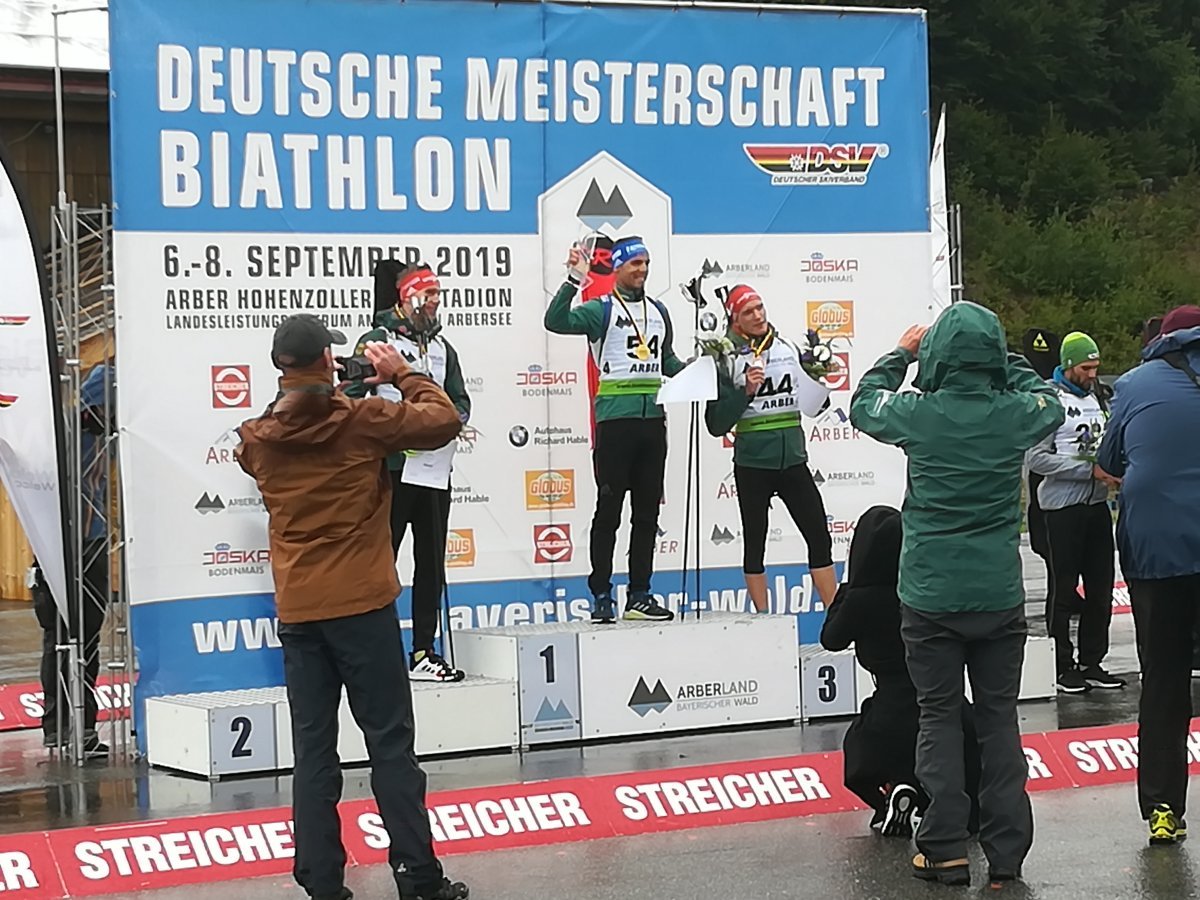 Am Wochenende fand im Hohenzollern Skistadion am Großen Arbersee bei kühlen Temperaturen und teils Regen der erste Teil der Deutschen Meisterschaften statt. Die Meistertitel im Sprint und in der Verfolgung waren zu vergeben, die sich beide Simon eindrucksvoll sicherte. Unser viermaliger Weltmeister feierte zu Beginn der Deutschen Meisterschaften ein gelungenes Comeback. Nach dem Sieg im Sprint am Samstag in 25:00.2 Min. (1,0) behauptete sich Simon auch in der Verfolgung am Sonntag mit 3 Schießfehlern (1,0,1,1). Nach 30:17.6 Min. überquerte er als Sieger und neuer Deutscher Meister in der Verfolgung die Ziellinie.