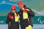 Linn Kazmaier schenkt ihrem Guide Florian Baumann im Rennen der Frauen mit Sehbeeinträchtigung zu dessen 21. Geburtstag eine Bronzemedaille.