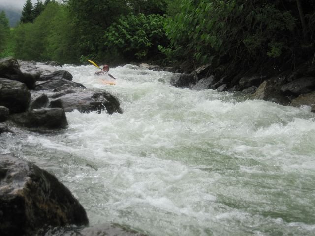 Bei sehr wenig Wasser befuhren wir die Standardstrecke der Kelchsauer Ache.