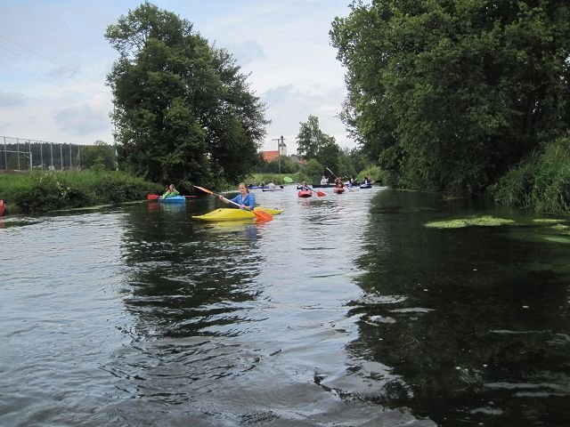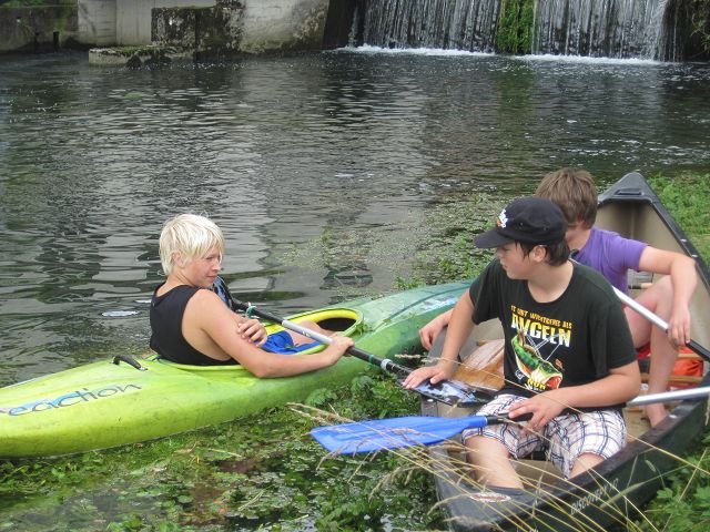 Viele der jugendlichen Teilnehmer können es kaum erwarten, bis es endlich in die Boote geht. Mit viel Spaß und Freude paddeln sie auf der Brenz zwischen Giengen und Heidenheim. Der Fluss geht durch das romantische Eselsburger Tal. Dabei kann es schon mal passieren, das man von einem Schwan angegriffen wird.